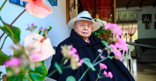 Como “uno de los primeros silleteros” presenta su familia con orgullo a Miguel Ángel Atehortúa Zapata, el hombre más viejo de Santa Elena con 102 años, quien desde joven dedicó su vida al campo y participó en varias ediciones de la Feria de las Flores.